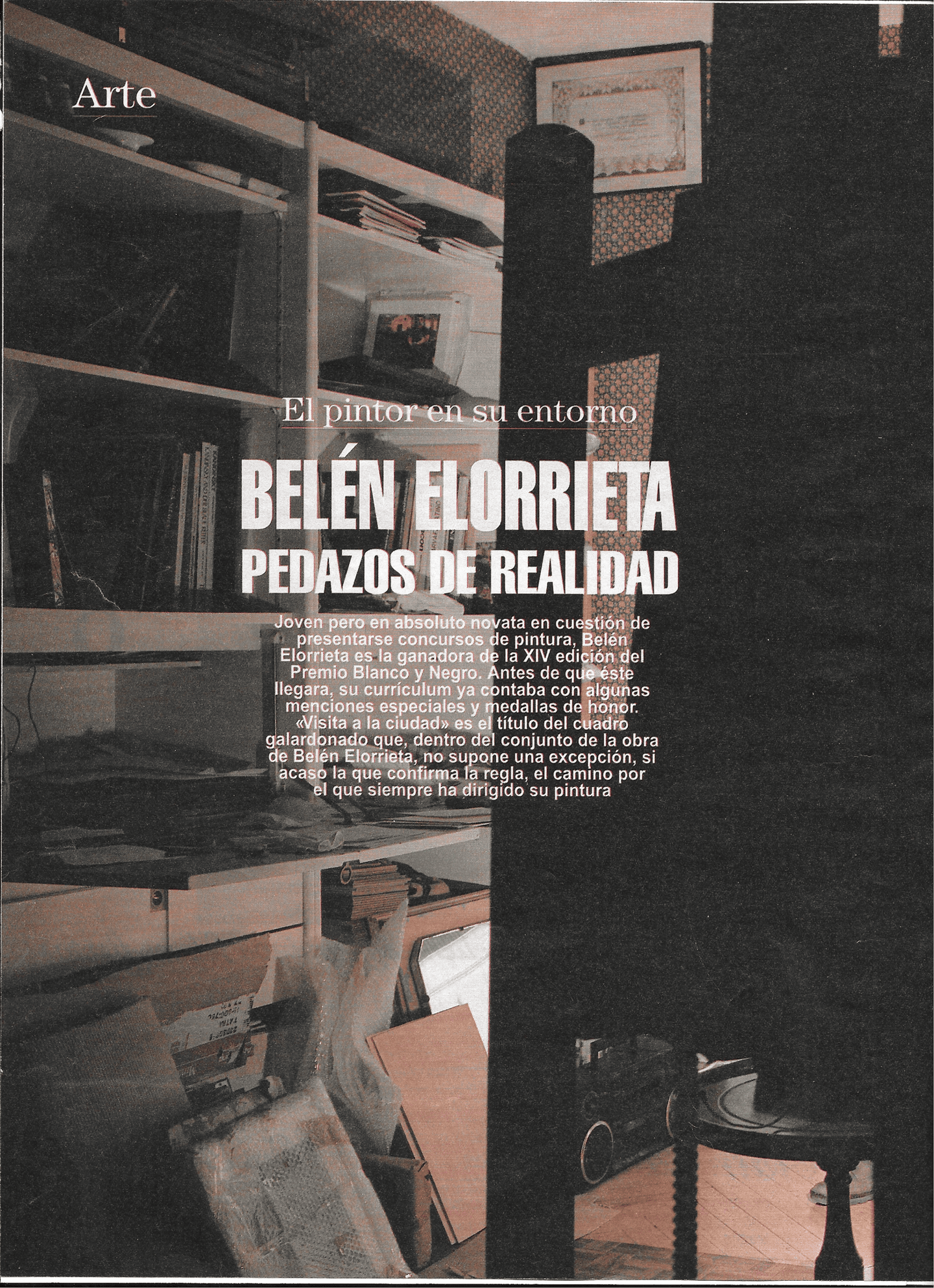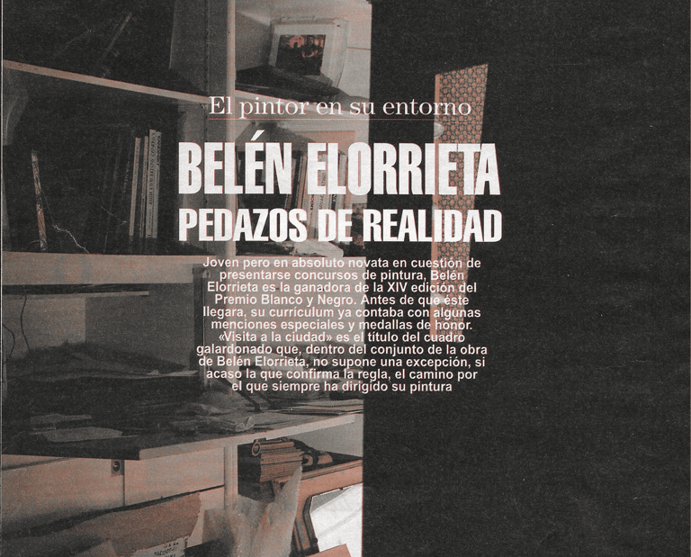 Cierto es, como señala Campoy en la presentación del catálogo, que Belén Elorrieta (Madrid 1962) es nombre habitual en los concursos y certámenes de los últimos seis años, tiempo de su breve y fulgurante carrera artística. Cierto, también, esa alegría de viviré y de pintar que se transluce en los cuadros, reflejo de una actitud, de unos conocimientos y de (sobre todo) un innato sentido del color, característica esta última destacable entre todas ellas, por que sin el pretexto que la pintora utiliza (interiores con figura, bodegón), la pintura de Velen Elorrieta sería válida en cualquier modalidad por sí misma, en un sentido abstracto incluso.